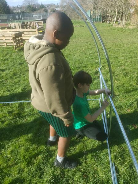 This week we worked alongside year 3 during their Forest School session and began building our polytunnel.