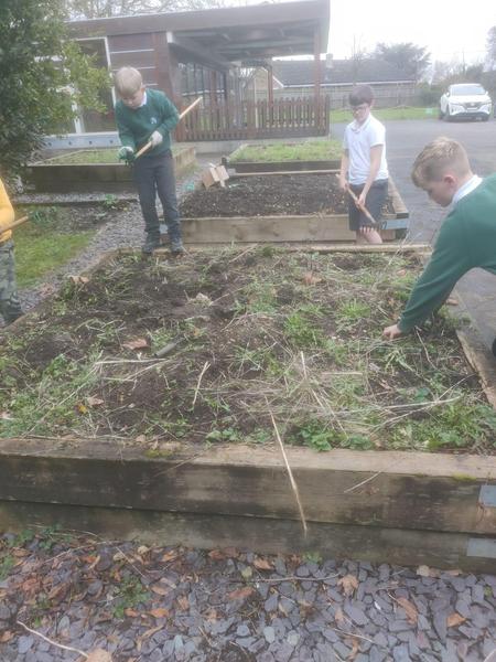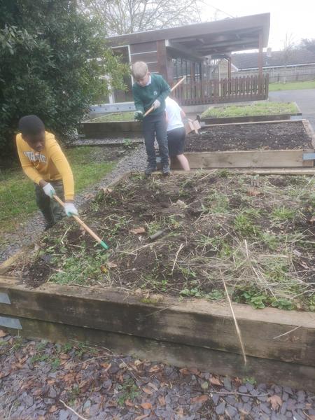 What a wet and windy day it was today!! Today we began digging a tench to bury the base of the polytunnel. We learnt about why this was so important and how this will help us ensure the polytunnel lasts as it should. We are hoping for some drier weather next week so we can add the cover and get planting!! We also have so many leaves to clear from the outdoor amphitheatre! Busy, Busy!