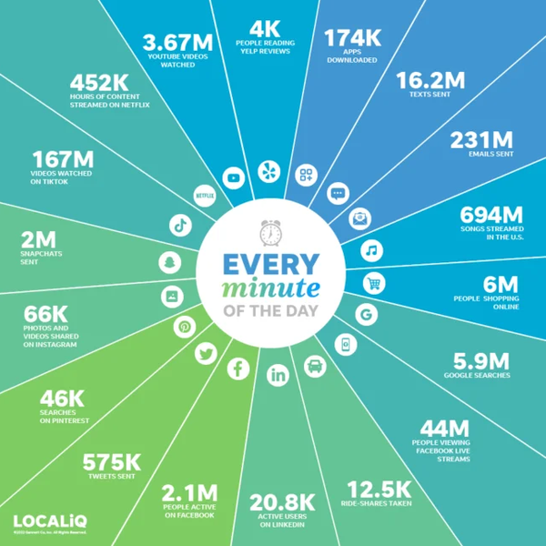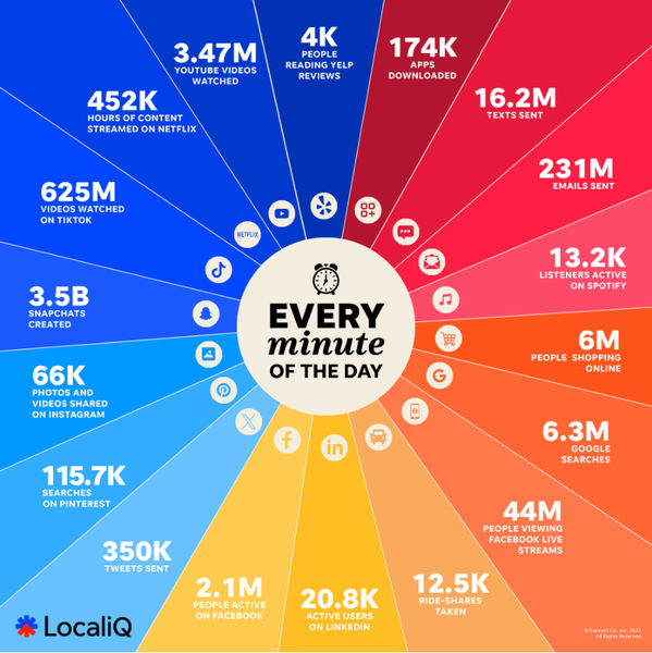 The numbers for these services are so enormous that they can only be shown using the 60 second time scale. Any bigger, and our brains can’t even process these massive quantities in any useful capacity.